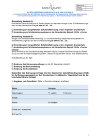 Betreuung: Schule: FG SuS: SCHÜLERBETREUUNGSHAUS AN DER GS BALG (nur wählbar für Kinder aus dem Stadtkreis, die eine Grundschule in der Trägerschaft der Stadt Baden-Baden besuchen oder wegen…