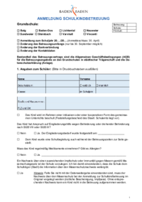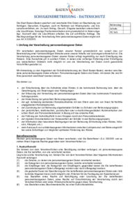 SCHULKINDBETREUUNG - DATENSCHUTZ Die Stadt Baden-Baden speichert und verarbeitet Ihre Daten zur Bearbeitung von Anträgen, Gesuchen, Eingaben, auch im Rahmen von Widerspruchs- und Einspruchsverfahren,…